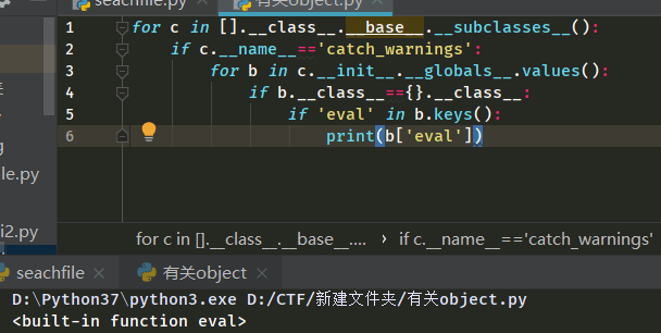 这两句先是查找了b中类与字典类相同的变量和函数(模块中的函数是以键值对的形式存储的,因此需要寻找同字典类型的类),然后再在对应b中寻找有无'eval'为Key值的存在,举个例子就知道这条语句在干什么了,例子如下: