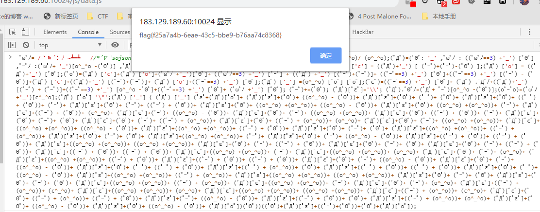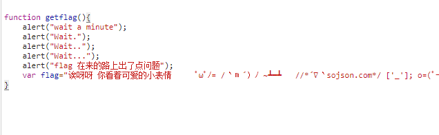 然后我们可以翻阅上面引入的几个,看着像是核心代码的JS文件,挨个翻阅在drawing.js里面发现了getflag,当然根据提示你直接在控制台输入getflag()也是可以的,得到aaencode的编码内容