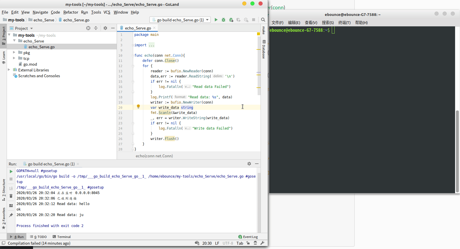 func echo(conn net.Conn){