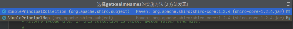 没跑了,这就是验证的时候所生成的识别特定用户类了,我们看看他的实现方法,既然这个类会被用来生成用户的识别对象,那么可以判断其中肯定有得到用户信息的办法,所以我们来看看getRealmNames方法的实现:
