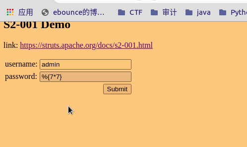 使用漏洞环境为:Vulhub/struct2/s2-001/