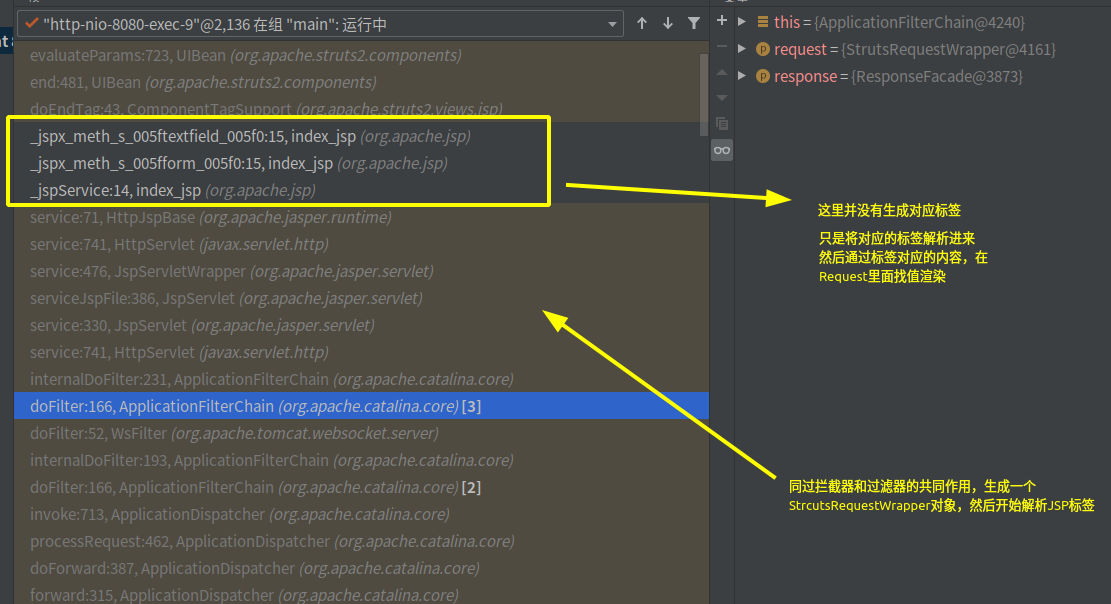 这个时候只是获得用户输入参数,还没有进行jsp的渲染,然后:
