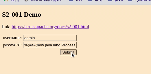 该漏洞因为用户提交表单数据并且验证失败时,后端会将用户之前提交的参数值使用 OGNL 表达式 %{value} 进行解析,然后重新填充到对应的表单数据中。例如注册或登录页面,提交失败后端一般会默认返回之前提交的数据,由于后端使用 %{value} 对提交的数据执行了一次 OGNL 表达式解析,所以可以直接构造 Payload 进行命令执行