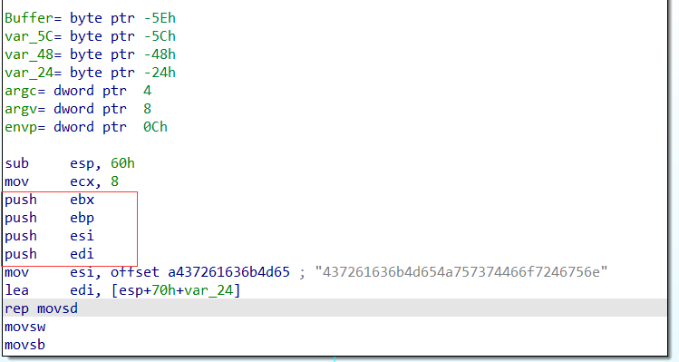 mov ecx,8 与后面rep有关,每次rep后ecx寄存器值减1