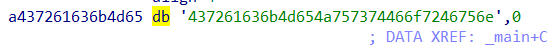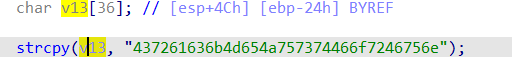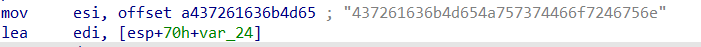 然后取得变量a437261636b4d65的偏移量,将该值交给esi寄存器。